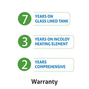 - Warranty: 7 Year on Glass lined tank, 3 Year on Heating Element, 2 Years Comprehensive