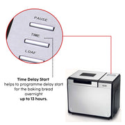 - Time Delay Start – helps to programme delay start for the baking bread overnight – up to 13 hours.