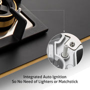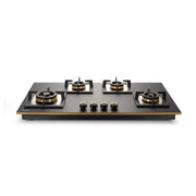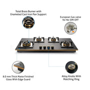 4 Burner Glass Gas Hob Top with Triple Ring Burner Total Double Ring Brass Burner with Flame Failure Device Auto Ignition (BH1094XLHTT2TRMGS)