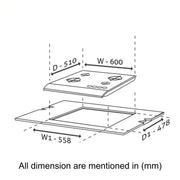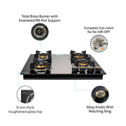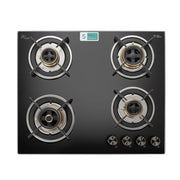 4 Burner Glass Gas Hob Top with Triple Ring, Total Double Ring Brass Burner with Flame Failure Device Auto Ignition (1064ROHTTDBMTRS)
