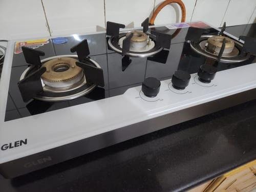 The Glen 1073 free standing hob is smartly designed to suit your modern kitchen. It comes with 3 forged brass burners including 1 high flame, 1 big and 1 small burners for hassle free cooking experience. It has 8mm thick toughened black & white glass top. It comes with strong vitreous enamelled pan supports for accomodation of heavy utensils. Enabled with multi spark integrated auto ignition, this hob has Italian gas valve for total safety. The smart & elegant bakelite knobs with firm grip ensure swift operations.