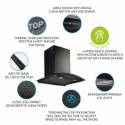 Auto Clean Curved Glass Chimney with Inverter Technology, BLDC Motor 1600 m³/h - 60/76/90cm (6067 AC BL)