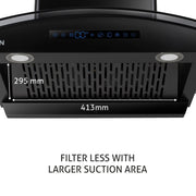 If you are looking for a chimney that make the filter cleaning process convenient, then Glen 6026 Auto Clean BLDC chimney is the best choice. It is a filter less chimney and has an external oil collector tray to collect the oil & grease particles. The 180W powerful motor ensures that you get a powerful suction with low noise. The motor comes with 12 year warranty. The touch controls with motion sensor are easy to operate. The strong 1400 m3/h suction throws the smoke from the pans to outdoors and ensures that your kitchen is odor-free and the walls are clean of any grime. It has eco-friendly power saving twin LED lamps to brighten up the cooking area.
