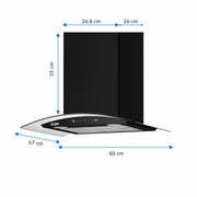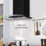 Auto Clean Chimney Curved Glass Baffle Filters with Motion Sensor 60/90cm 1200 m³/h - Black (6063 BL)