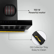 - Oil Collector tray: The chimney comes with a Removable Oil Collector tray which effectively collects grease as well as oil drops. As a result, it can be cleaned easily & assembled back once dried.