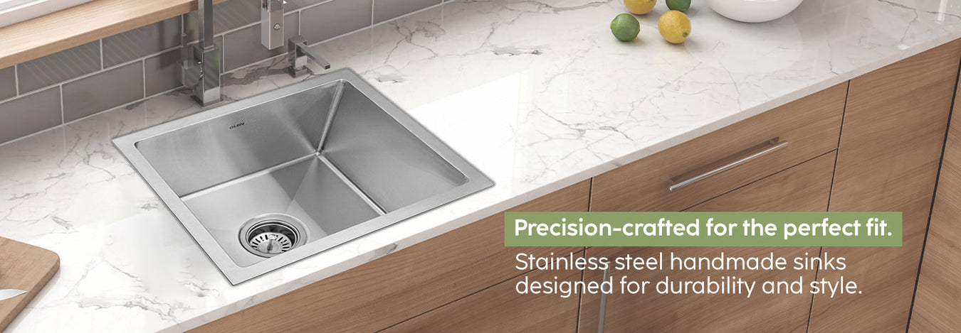 Glen handmade sinks are crafted from premium stainless steel, offering superior durability, scratch resistance, and a sleek design. They are built for long-lasting performance and elegant appeal compared to regular machine-made sinks.