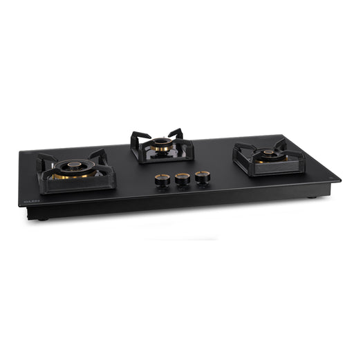 3 Burner Glass Hob Top with Triple Ring Burner Double Ring Forged Brass Burners Auto Ignition (1063 SQ HT DB TR)
