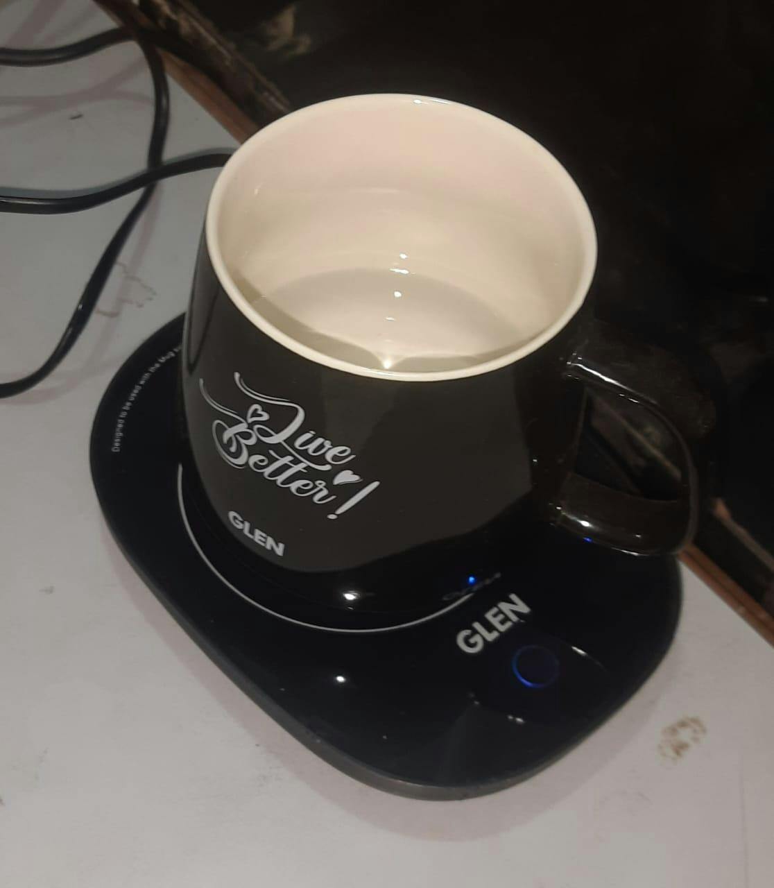 The Glen Warmer plate let's you keep tea/coffee warm or lukewarm entire day. You can also keep warm soups, tiffin, etc. by placing a flat pan on plate. It consumes only 16w power and works with gravity, so when you place a cup of water filled, the plate will switch on automatically, and the moment you remove the cup it switches off. Warm water level reaches 50-55°C in 60 minutes depending upon input water temperature.
