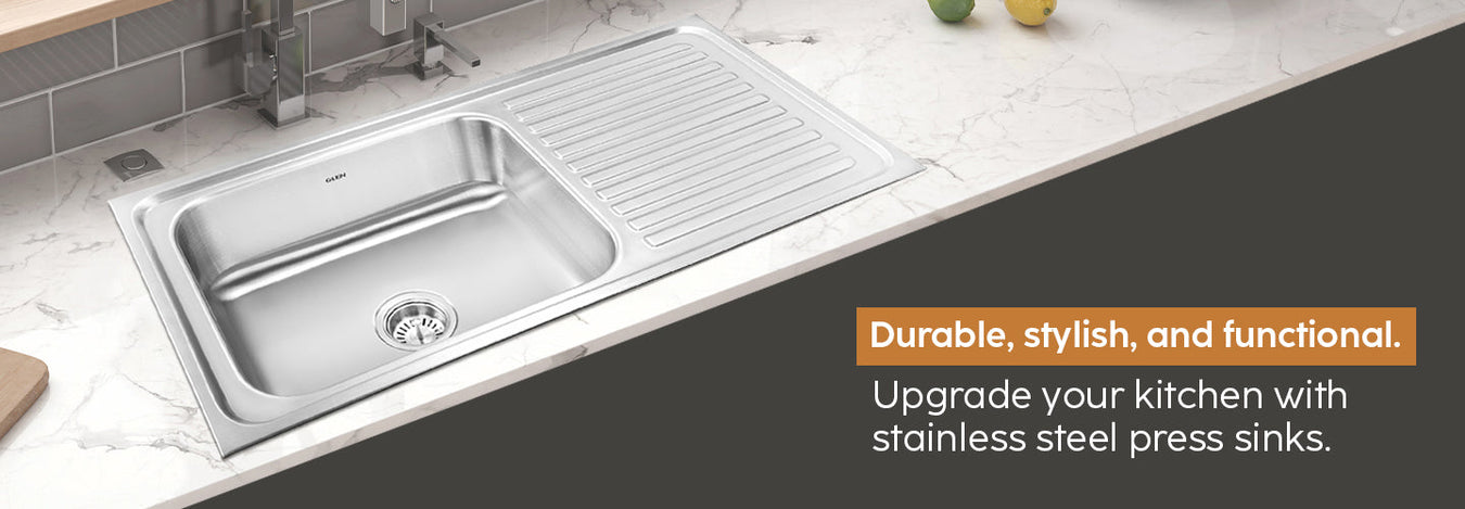 Upgrade your kitchen with Glen’s premium press kitchen sinks, crafted for strength, hygiene, and long-lasting performance. Designed to resist stains, scratches, and corrosion, these sinks bring both style and function to modern kitchens. Get the press kitchen sink at the best price without compromising on quality or durability.