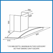 Kitchen Chimney Curved Glass with Touch Sensor Baffle filter 90cm 1250 m3/h - Black (6071 TS BL 90)