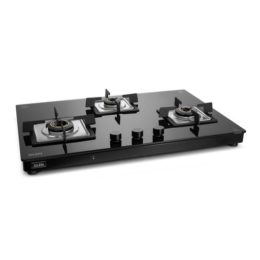 3 Burner Slim Glass Gas Stove with High Flame Forged Brass Burner - Manual/Auto Ignition (CT1038SLSQBLFB)