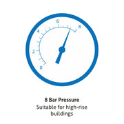 - Suitable for high-rise buildings and can withstand water pressure up to 8 bars. The 4-star BEE rating saves on electricity costs, making it an energy-efficient choice.