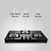3 Burner Free Standing Hob with Forged Brass Burners Auto Ignition Black (BH1073XLSQFSFBBLAI)