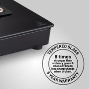 - Easy to clean 8 mm thick toughened glass, scratch and stain resistant. Black looks enhance the beauty of modern kitchen.