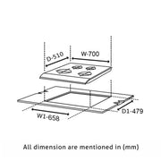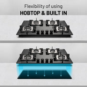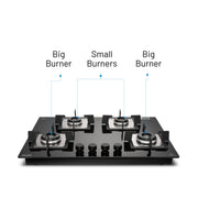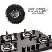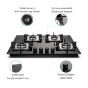 4 Burner Glass Hob Top with Italian Double Ring Burner Auto Ignition (BH 1074 SQ HT IN 70)