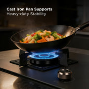 - Forged brass burners with double-ring flames for Indian cooking