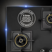 - Equipped with 4 Different Double ring forged Brass Burners: 1 Triple Ring, 1 Mini Triple Ring & 2 Big Burners for diverse cooking requirements. Integrated auto ignition 1.5 V - no need to search for lighter or matchstick.