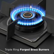 4 Burner Matt Glass Hob Top 2 Triple Ring Burner Double Ring Forged Brass Burner Auto Ignition (BH1094SQHT2TRMG)