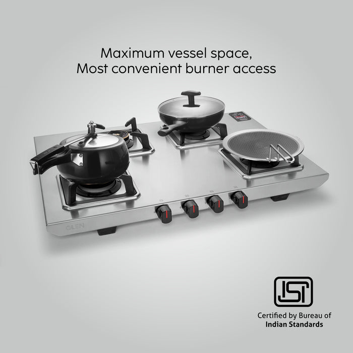 - Equipped with 4 Different Multi Ring Forged brass burners: 1 high flame, 1 big and 2 small burner for diverse cooking requirements.