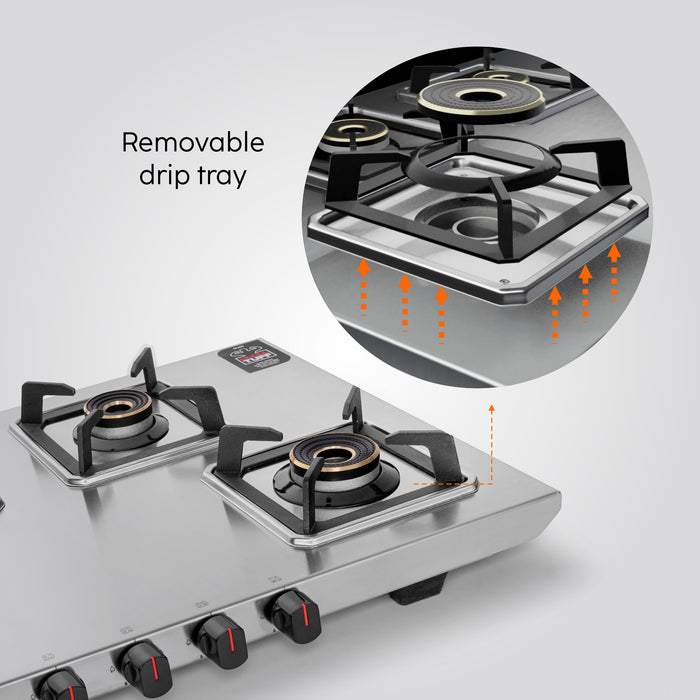 4 Burner Ultra Tuff Stainless Steel Gas Stove with Multi Ring Forged Brass Burner & Drip trays (CT1054UTDTSS)