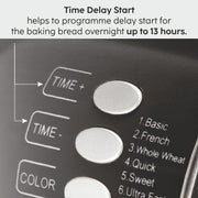 - Time Delay Start – helps to programme delay start for the baking bread overnight – up to 13 hours.