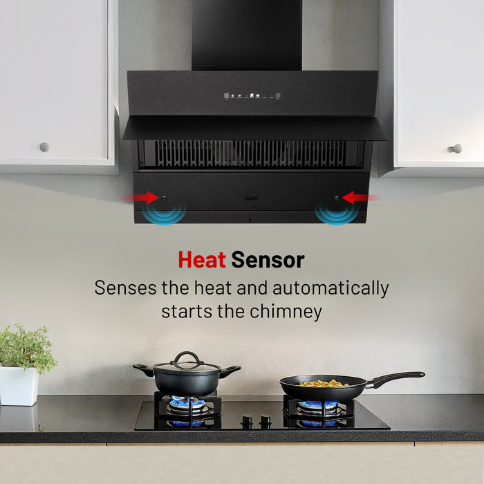The Glen 6073 is a filter less Auto Clean chimney crafted to add a stylish look to your kitchen. It has oil collector tray to collect oil & grease particles. The powerful Brush Less DC motor ensures that you get a powerful suction with low noise. The motor generates less heat and comes with 15 year warranty. The touch sensor controls with motion sensor allows operation with simple wave of hand. The strong 1600m³ /h suction throws away smoke from pans to outdoor and ensures that the kitchen is odor free and the walls are clean of any grime. The 2 eco friendly power saving LED lights provides ample lighting to the hob area.