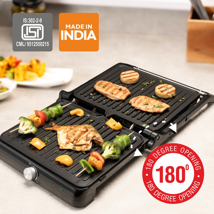 Electric Contact Grill & Sandwich Maker with 180-degree opening, Non-Stick Plates, 2000w - (SA3031INCG)