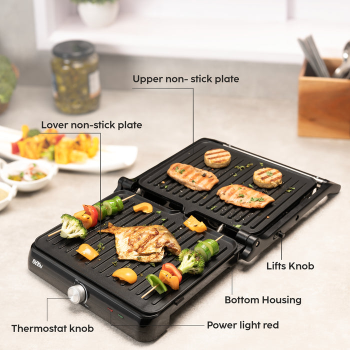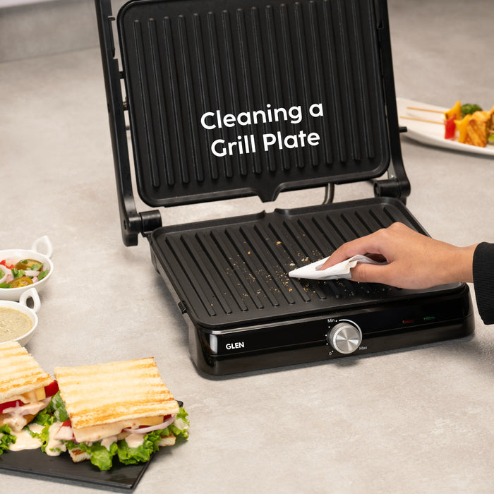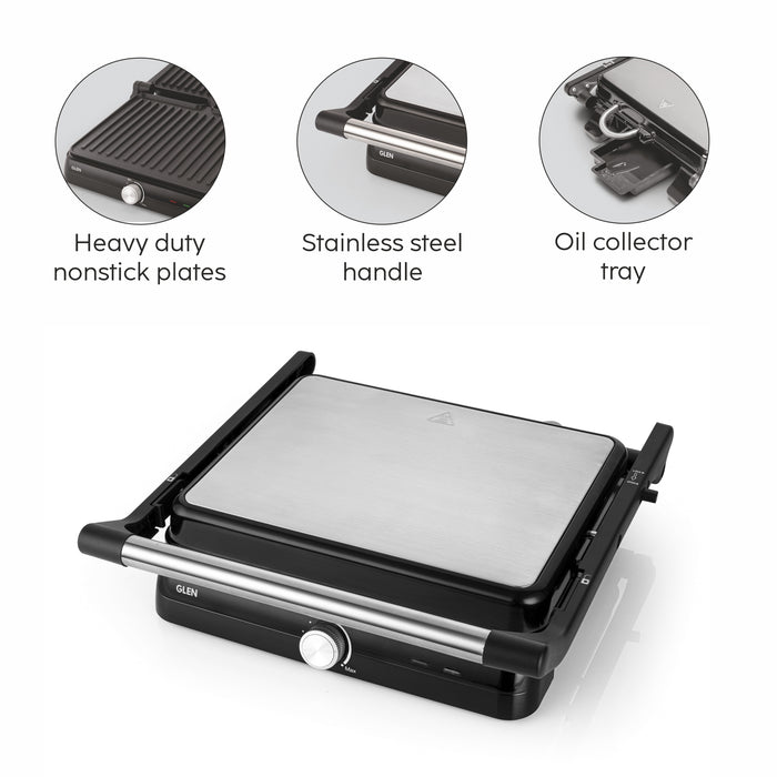 The Glen 3031 Contact Grill lets you prepare great tasting food without using much oil. It comes adjustable thermostat for heat control. It is ideal for cooking & grilling a wide range of foods including vegetables, fruits & meats quickly. The easy to clean non-stick grill plate and oil collector tray allows convenient usage.