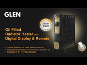 The Glen 7013 Electric Oil Filled Radiator Digital Room Heater is ideally designed for long spell of heating. It comes with thermal fins to maximize heat flow keeping a low surface temperature. It gives a warm sunlight feel and spreads warmth in the room evenly and silently. It has thermostat to maintain desired temperature and overheating protection. Having castor wheels and handle, it allows convenient movement across the room.