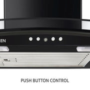 Kitchen Chimney Curved Glass with Push Button Baffle filters 60cm 1000 m3/h -Black (6070 JU BL)