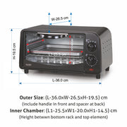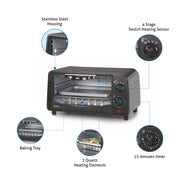 Toaster Griller - 9 Litre 800W Power Quartz Heating Elements - Black (5009)