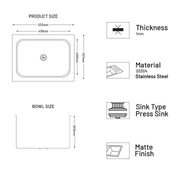 Stainless Steel Grade 304 Sink for Kitchen, Single Bowl Press Sink 21x18x8 inches, Matte Finish (KS-SP21188SBM)
